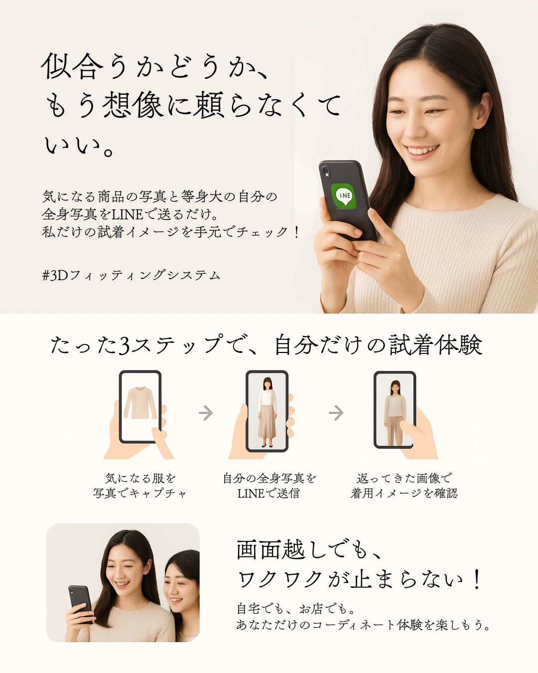 気になる商品画像と等身大の自分の全身写真を送るだけ!
